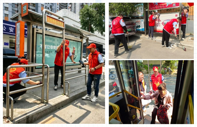 通利公司志愿者化身文明使者,在交通枢纽引导秩序、帮扶老人、清洁站务设施,社区里打扫卫生、擦拭展板,将关怀融入细节。