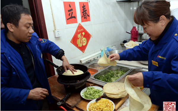 大年初七逢立春 211、222路公交车队为司机烙春饼
